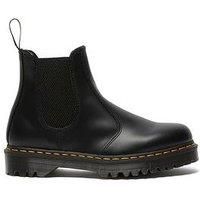 Dr Martens 2976 Bex Chelsea Boots Size & Fit True to size - order your usual size Standard fit Available in sizes 3 - 8 Sole height: 1.3inch Details 2976 Bex Chelsea Boots by Dr Martens Black Slip-on style A chunky grooved sole marked with deep cleats and an exaggerated tread pattern Built from standout Smooth leather Finished with yellow welt stitching and a black and yellow heel loop Material & Care Material Content: 100% leather Lining: Leather/Textile Sole: Other Materials Upper: Leather