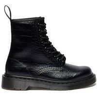 Dr Martens 1460 Croco 8 Eye Boot Atlas Croc Emboss Size & Fit True to size - order your usual size Standard fit Available in sizes 3 - 8 Details 1460 Croco 8 Eye Boot Atlas Croc Emboss by Dr Martens Black Round closed toe with ankle boot height Closed heel Chunky sole With rear pull tab With laces Material & Care Material Content: 100% leather Lining: Leather/Textile Sole: Other Materials Upper: Leather