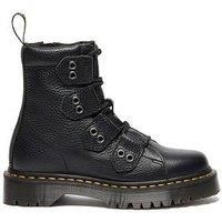 Dr Martens 1460 BEX LTT Boots Size & Fit True to size - order your usual size Standard fit Available in sizes 3 - 8 Details 1460 BEX LTT Boots by Dr Martens Black Lace up front with a side zip for easy on/off Textured leather Chunkier sole Soft milled nappa leather Antique silver trims & eyelets Smoke Bex sole adds extra height without being a platform Material & Care Material Content: 100% leather Lining: Textile/Other Sole: Other Materials Upper: Leather - Manufacturers part number: 41750001