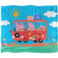 PEPPA PIG SILKY TOUCH BLANKET - 300 GSM fabric provides warmth and comfort yet is lightweight and breathable, that will make a great decorative addition to any room. | Hasbro Peppa Pig Kids Silky Touch Blanket 152X127Cm Road Trip With The Family In White - Manufacturers part numbers: HBRO1301-BKT3-50x60|Hasbro_190860720559