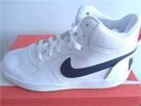 Get offerNike Court Borough Mid (GS) trainers sneakers shoes 839977 107. uk 5.5 eu 38.5 us 6 Y. White uppers with Nike swoosh on outer and inner side of the shoe obsidian. Nike logo on the tongue and back of heel. - Manufacturers part number: 839977