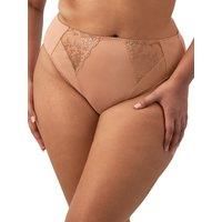 Elomi Zarla High Leg Brief. High waisted brief with a high leg cut, embroidery panels and double layer stretch mesh for modesty. Product is recommended as gentle wash only. | Elomi Women's Zarla High Leg Brief in Nude | Size: 18 - Manufacturers part number: EL302553