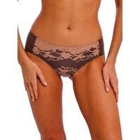 Wacoal Florilege Brief. Mid rise brief with full back coverage, lace front and freecut back leg to avoid VPL. This product is recommended to be washed on a gentle wash cycle. | Wacoal Women's Florilege Brief in Brown | Size: 10