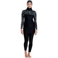 The Stellar 3 Piece Modesty Suit is designed for looking good and swimming comfortably. The stunning black and white Stellar print is featured along the sleeves and neckline. It is perfect for those trying to limit their sun exposure. Designed to be long enough to cover the whole torso while tie cords attach the top to the slim fit trousers so everything stays in place. The headpiece is removable and can be fixed via buttons to the top for security. Zoggs modesty suits also feature font-to-back shelf br...