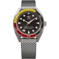 adidas Edition Two Unisex Watch Stainless Steel SST Silver tone case and mesh band, Black / Vivid Red / Beam Yellow top ring, black dial Case Diameter (in cm): 4.3 Case height (in cm): 1.1 Case Shape: Round Glass: Mineral Movement: Japanese Quartz (battery) Strap Material: Stainless Steel Water Resistant: Y - Manufacturers part number: AOFH225022I