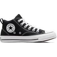 Converse Chuck Taylor All Star Malden Street Trainers Size & Fit Standard fit Available in sizes 3-5.5 older Details End use: Lifestyle Chuck Taylor All Star Malden Street Kids Trainers by Converse Black A leather upper gives these hi-top Chucks a unique twist on classic standout style for your little one. Comfy cushioning makes all-day play possible, while an adjustable ankle strap and heel-pull tab make on-and-off a breeze. Mid-top shoe with durable canvas upper Soft foam underfoot cushioning for comf...