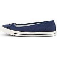 Converse Girls Dainty Ballerina Slips Size & Fit Standard fit Available in sizes 3 - 8 Details End Use: Lifestyle Girls Dainty Ballerina Slip by Converse Blue Taking cues from ballet flats, the Dainty Ballerina pairs a clean, low-profile design with signature Chuck Taylor details. No dancing skills required. Durable canvas upper, with that iconic ballet-flat look OrthoLite cushioning helps provide optimal comfort Decorative lace bows complete the look Trending colours refresh your rotation Classic All S...
