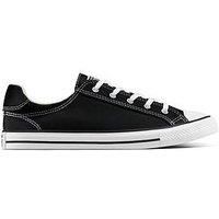 Converse Womens Chuck Taylor All Star Dainty Lucky Low Tops Size & Fit True to size - order your usual size Standard fit Available in sizes 3 - 8 Details End Use: Lifestyle Womens Chuck Taylor All Star Dainty Lucky Low Top by Converse Black Lace fastening Low profile cut With logo detailing Material & Care Material Content: 100.0% Textile Washing Instructions: Wipe Clean