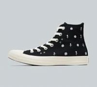 Converse Womens Chuck Taylor All Star High Trainers in Black, Egret and Foothill Green. Somehow managing to pull off a look that is both sporty AND edgy, this remarkable silhouette has transcended rapidly changing fashions and trends for over a century. With a durable canvas upper for that signature classic Chucks aesthetic complete with contrast embroidered flower designs, OrthoLite cushioning for optimal comfort, medial eyelets for improved airflow, signature diamond patterned outsole and legendary Ch...