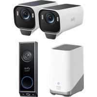 Includes: eufyCam S3 Pro (2 Cam Kit), Video Doorbell E340 (Battery Powered). eufyCam S3 Pro (2 Cam Kit): Nighttime That's as Bright as Day; Continuous Power with Solar; Radar-Powered Detection Alerts Only What Matters; Local Security, No Monthly Fee; Compatible with Apple Home, Alexa, and Google Assistant. Video Doorbell E340 (Battery Powered): Dual Cameras, Double Security; Color Night Vision for a Clear View; See What Matters in 2K Full HD Clarity; Battery or Wired, Your Choice; Pair with a Chime to...