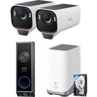 Includes: eufyCam S3 Pro (2 Cam Kit), Video Doorbell E340 (Battery Powered), 1 TB hard drive. eufyCam S3 Pro (2 Cam Kit): Nighttime That's as Bright as Day; Continuous Power with Solar; Radar-Powered Detection Alerts Only What Matters; Local Security, No Monthly Fee; Compatible with Apple Home, Alexa, and Google Assistant. Video Doorbell E340 (Battery Powered): Dual Cameras, Double Security; Color Night Vision for a Clear View; See What Matters in 2K Full HD Clarity; Battery or Wired, Your Choi...
