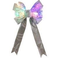 Christmas decor: Illuminate your Christmas tree with this LED decorative bow. Packs: Get one bow, a pack of two or a pack of four! Application: These decorative Christmas bows are perfect to hang up on your Christmas tree, on wreaths, or wear as a quirky Christmas accessory. Design: Simple bow design with two ribbons hanging with a shimmering finish, measuring to 39cm x 22cm. Options: Available in two colours, silver (white light) or gold (warm light). Features: Easy to use, versatile and battery powere...