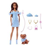 Get offerDouble the styling fun with Barbie Twinning Looks! Each Barbie doll comes with a pawsitively darling pet dog in a matching outfit. With a set of coordinated accessories for both Barbie and her dog, kids can style the pair in twinning looks from head to toe! Bows, necklaces, and more add pops of personality. From a walk in the park to window shopping around town, this adorable pair is dressed for anything! Each set sold separately, subject to availability. Doll cannot stand alone. Colours and decorations... - Manufacturers part number: JFP38