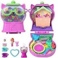 This adorable Polly Pocket compact features a kitty gumball machine exterior and a fun glitter shaker! Open the playset to discover a sweet adventure! Pop into play with one micro doll and 8 themed accessories, including one pet cat. Spin on the watermelon teacups or ride on the seesaw! Open the candy house and discover sugary surprises theres so much to do! When its time to run, pack it up for on-the-go fun! Ideal for ages four years old and up, especially those who love sweet treats. Subject to availa...