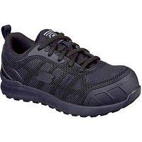Keep protected and comfortable with sporty good looks wearing the SKECHERS Work: Bulklin - Ayak Comp Toe shoe. Smooth durable synthetic and mesh fabric upper in a lace up sporty composite safety toe slip resistant work sneaker with stitching accents.... - Manufacturers part numbers: Skechers_0195204026854|810PR|77289EC BBK|323075534208
