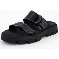 SOREL Womens Rein Cb Slide Sandals Size & Fit True to size - order your usual size Standard fit Available in sizes 4 - 8 Half sizes available in selected sizes Details End Use: Lifestyle Womens Rein Cb Slide Sandal by SOREL Black Chunky soles Slip on Material Content: Upper: Leather. Lining/sock/sole: Other Materials Washing Instructions: Wipe Clean