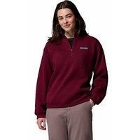 Columbia Women's Meridian Creek Quarter Zip - Burgundy Comfort and style combine in this Columbia women's half zip sweatshirt with classic design. The comfort ribbed cuffs and hem, and zip up design offer a flexible fit for seasonal warmth. Material Content: 60% Cotton, 40% Polyester Washing Instructions: Machine Washable