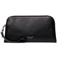 Kate Spade New York Halo Fine Grain Leather Medium Wristlet Size & Fit Length: 0.71" Height: 4.45" Width: 8.74'' Details Halo Fine Grain Leather Medium Wristlet by Kate Spade New York Black Tonal stitching Zip fastening Credit card slots Fine grain leather Lined Material & Care Material Content: HANDBAG, WRISTLET of , 100% Cow Leather