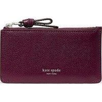 Kate Spade New York Loop Pebbled Leather Ew Zip Card Case Size & Fit Length: 5.7" Height: 3.1" Details Loop Pebbled Leather Ew Zip Card Case by Kate Spade New York Purple Exterior: 5 card slots Closure: zip Logo: foil emboss Material & Care Material Content: CARD CASE of , 100% Cow Leather