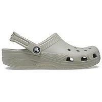 Crocs Classic Clogs in Elephant. Water-friendly design and airy ventilated forefoot for enhanced breathability that also helps any excess water and debris drain away. Crafted from fully moulded Croslite material that moulds to your foot for superb arch support and that classic Crocs trademark comfort. With a secure fitting heel strap and lightweight non-marking soles, this versatile silhouette is quick-drying and easy to clean and bears the famous Crocs logo. Brown Size - 11 - Manufacturers part number: VU8JT