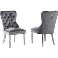 Colour Options: Five sophisticated shades to match any dcor. Plush Velvet Finish: Sumptuous, soft-touch velvet upholstery. Iconic Lion Knocker: Designer chrome-effect door knocker detail. Statement Style: Instantly elevates dining rooms or accent seating. Pack Options: Choose from a single, pair or pack of four. Sturdy Chrome Legs: Durable mirrored chrome base for a sleek look. Padded Seat & Backrest: Supportive high back and generous padding.