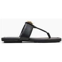 MARC JACOBS The Dual T Sandals Size & Fit True to size - order your usual size Standard fit Available in sizes 35 - 41 (EU 35:UK 2, EU 36:UK 3, EU 37:UK 4, EU 38:UK 5, EU 39:UK 6, EU 40:UK 7, EU 41:UK 8) Details The Dual T Sandals by Marc Jacobs Black Smooth premium leather upper Signature double J logo detail Open toe with a single toe post Slip on style Flat rubber outsole Material & Care Material Content: 100% LAMB LEATHER Washing Instructions: Wipe Clean