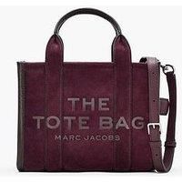 MARC JACOBS The Small Suede Tote Size & Fit L 10" x D 5" x H 8" (26cm x 13cm x 21cm) Handle drop 4" / 11cm Details The Small Suede Tote by MARC JACOBS Dark Purple Small suede tote with a plush textural finish and debossed namesake branding for a refined elevated look Top zip closure Suede top handle Removable and adjustable leather shoulder strap for versatile styling Interior zip pocket for organised storage Twill lining Dust bag included Material & Care Material Content: 100% SUEDE COW LEATHER