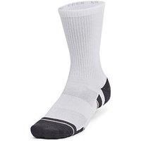 These socks are engineered to elevate your athletic performance, providing exceptional support and cushioning while keeping your feet cool and dry. Made with a breathable mesh fabric that moves with your foot and helps wick sweat, forefoot cover for a locked in feel. Strategic cushioning in impact areas provides a comfortable experience even during high-intensity workouts. Detailed with a UA logo. 3 Pack