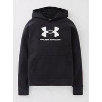 Under Armour Rival Fleece Hooded Top Size & Fit Regular fit Available in sizes XS (5-6), S (7-8), M (9-10), L (11-12), XL (13-15) years Details Rival Fleece Hoodie by Under Armour Black/White Soft fleecy fabric Ideal for layering over a tee Overhead hooded style Oversized Under Armour logo to chest Kangaroo pocket Ribbed cuffs and hem Material - Manufacturers part number: 1379791