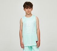 Jordan Junior 23 Jersey in Mint Foam and White. A stylish and comfortable jersey for young basketball players. It is made from a lightweight, breathable mesh fabric that will keep you cool and dry on the court. The jersey features a classic red and black color scheme with the Jordan Jumpman logo on the front and the number 23 on the back. It also has a relaxed fit that allows for maximum movement. This jersey is perfect for any young basketball player who wants to look and feel their best on the court. ... - Manufacturers part number: 25352081