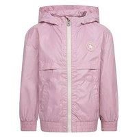 Converse Kids Girls Windbreaker Jacket Size & Fit Regular fit Available in sizes 2-3 years - 6-7 years Details Kids Girls Windbreaker Jacket by Converse Pink Windbreaker High neck hood Long sleeves with elasticated cuff Zip fastening Side slip pockets Elasticated hem Logo patch