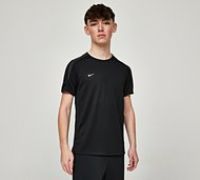 Nike Junior Strike Dri-FIT T-Shirt in Black and Anthracite. Designed for active living Nike Dri-FIT Technology moves sweat away from your skin for quicker evaporation, helping you stay dry and comfortable no matter what the workout. With a knitted fabric that's smooth and stretchy mesh on the sleeves and under the arms provides added breathability. A printed swoosh sits proudly to left chest. Black Size - S/B - Manufacturers part number: FN8407-010
