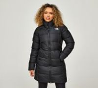 The North Face Womens Longline Saikuru Jacket in Black. The North Face go long is the relentless battle against the cold with this sublime longer length padded polyester jacket. An extended version of the Saikuru, with a full zip fastening front and a build that offers up almost head-to-toe warmth. Secure zip fastening pockets to safely stash away your small essentials, comfy high collar, and classic The North Face embroidered branding to left chest and back right shoulder. Regular fit. Black Size - L