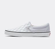 Vans Womens Classic Slip On Trainers in Check Halogen Blue These classic canvas slip on trainers from Vans feature a comfy padded collar with elasticated inserts to tongue making it easier to slip-on. Complete with eye-catching checked detail. Blue Size - 3.5