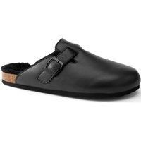 Whether it's a chilly morning or the end of a hard day, your feet will love sinking into these neatly buckled mule slippers. The sumptuous shearling wool interior is naturally soft and breathable, warming without overheating. Foam soles are super light, while practical rubber treads let you pad safely outdoors. | Lands' End Men's Leather Buckle Mule Slippers in Black | Size: 10