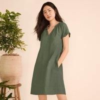 Loved for its blend of effortless elegance, comfort and refined practicality, our Smocked Linen Dress is a summer dressing staple. Pure linen's breathability makes it ideal for comfortable travel and fun outdoor events. The dress's charm and subtle artisanal character create a soft silhouette that's made for leather sandals. | Lands' End Women's Petite Smocked Linen Dress in Dark Green | Size: 16-18