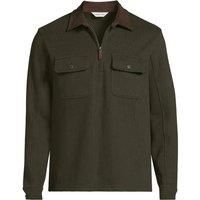 The Bedford jumper is a true classic, elevated with a sophisticated touch - a chic corduroy collar that adds subtle yet distinctive flair. Crafted for comfort, this soft knit is perfect for leisure wear, whether you're out and about or relaxing at home. | Lands' End Men's Corduroy Collar Bedford Quarter Zip Jumper in Dark Green | Size: Large