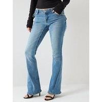 TRUE RELIGION Joey Low Rise Flare Flap Jeans Size & Fit True to size - order your usual size Available in sizes 26 - 32 Details Joey Low Rise Flare Flap Jeans by TRUE RELIGION Light Wash Bootcut leg Low-rise Button and zip fly Five pocket design with flap and button fastening Contrast stitching Material & Care Material Content: 69% COTTON 25% POLYESTER 5% RAYON 1% ELASTANE - Manufacturers part number: 209271-JDEM