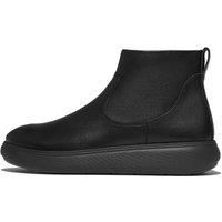 Sleek leather ankle boots with convenient side zip closure for easy wear Elastic side panels provide a comfortable, secure fit Rounded toe design offers ample room for all-day comfort Chunky platform sole adds subtle height while maintaining stability Minimalist silhouette makes these boots a versatile wardrobe staple These FitFlop Iq-Comff Leather Zip Ankle Boots combine contemporary style with exceptional comfort. The streamlined design features a smooth leather upper and subtle pl...