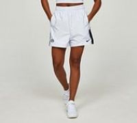 Nike Womens NSW Woven Shorts in Football Grey. An absolute worldie hits the back of your wardrobe£s net courtesy of this super strike from Nike. Woven shorts with an elasticated adjustable drawstring waistband, open hand pockets, contrast detailing, football graphic to right leg and Nike Swoosh to left leg. Grey Size - XS