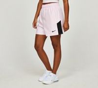 Nike Womens NSW Woven Shorts in Pink Foam and Black. An absolute worldie hits the back of your wardrobe£s net courtesy of this super strike from Nike. Woven shorts with an elasticated adjustable drawstring waistband, open hand pockets, contrast detailing, football graphic to right leg and Nike Swoosh to left leg. Pink Size - XS
