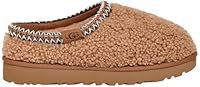 UGG Womens Tasman Maxi Curly Slippers in Chestnut. Based on UGG's original super-slipper, the Tasman, the Maxi Curly model is made from genuine sheepskin and lined with plush 17mm UGGplush for a premium slipper you can drown in comfort in. Foam footbed, 10mm curly sheepskin vamp, sugar cane EVA outsole, recycled textile binding, distinctive UGGbraid collar, 1.25 platform height and suede and embossed UGG logo. This product contains real fur from sheep or lamb. Fur may be sourced from Australia, Ireland...