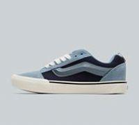 Vans Knu Skool Trainers in Tri-Tone Parisian Night. A delightful re-issued model from the 1990s from back when the trend was for skate shoes to be extra puffy and proud. With a mix of deluxe suede and durable canvas teaming up on the upper, the low top silhouette boasts a large puffy tongue and ankle collar that provide a sensational exaggerated look that channels the spirit of the original Old Skool. Puffy 3D moulded Vans sidestripe, handy heel pulls and signature rubber waffle outsoles. Blue Size - 11