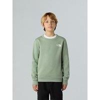 The North Face Teen Simple Dome Crew Size & Fit True to size - order your usual size Regular fit SIZES: XS=6 YEARS, L=12 YEARS, 2XL=18 YEARS+, M=10 YEARS, S=7-8 YEARS, XL=14-16 YEARS Details Teen Simple Dome Crew by The North Face Green Logo print Crew neckline Long sleeves with ribbed cuff Material & Care Material Content: 68% Cotton, 32% Polyester Washing Instructions: Machine Washable
