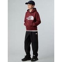 The North Face Teen Drew Peak Overhead Hoodie Size & Fit True to size - order your usual size Regular fit Available in sizes min - max Details Teen Drew Peak Overhead Hoodie by The North Face Red Long sleeves with ribbed cuff Hoodie with front kangaroo pocket with stitch and bartacks Embroidered logo on the front and back Material & Care Material Content: 80% Cotton, 20% Polyester Washing Instructions: Machine Washable