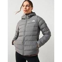 The North Face Women's Aconcagua 3 Hoodie Size & Fit True to size - order your usual size Regular fit Regular length Available in sizes XS - XL Details Women's Aconcagua 3 Hoodie by The North Face Grey Water repellent finish Main body insulated with a 50/50 blend of 600-fill waterfowl down and polyester Zoned polyester sheet insulation for warmth even in wet weather Attached, adjustable three-piece hood with a cinch-cord and cord lock on the back Exposed centre front zip Secure-zip hand warmer pockets... - Manufacturers part number: WLRVA