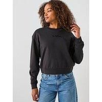 Vans Womens Essential French Terry Relaxed Crew Size & Fit True to size - order your usual size Relaxed fit Available in sizes XS - XL Details Womens Essential French Terry Relaxed Crew by Vans Black Comfortable French terry cotton fabric Tonal embroidered logo to the centre chest Crew neckline Long sleeves Ribbed neck, cuffs and hem Material & Care Material Content: 100% COTTON Washing Instructions: Machine Washable