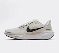Nike Womens Pegasus 41 Trainers in Sail, Black, Phantom and White. Offering a responsive cushioning that delivers an energised ride, ideal for daily road running. They feature a lighter, more efficient energy return thanks to dual Air Zoom units and a ReactX foam midsole. The upper has been redesigned with improved engineered mesh, making the shoes lighter and more breathable. Key elements include a breathable mesh upper, ReactX foam surrounding the Air Zoom units for enhanced responsiveness, and a waff...