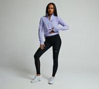Nike Womens Pro Mid-Rise Leggings in Black and Lilac Ice. Fuelled by Nike's Dri-FIT technology that moves sweat away from your skin for quicker evaporation, meaning you stay fresh and dry. Made from soft stretchy fabric that clings onto your body for gentle but durable support, the branded wide elasticated waistband sits flat against your skin for easy layering and keeps the leggings in place as you bend and stretch. Printed contrast Nike Swoosh to left leg. Black Size - S