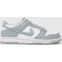 Nike Junior Dunk Low Trainers in White, Light Smoke Grey and White. Whether you're new to the world of Dunks or an avid collector, the Dunk Low Retro Black White is a must-have for your collection. One of the most classic styles on the market with unrivalled comfort as an added bonus. The crisp leather upper is layered with contrasting panels and of course the iconic Swoosh. The perforated toe box, rubber midsole and Nike Air technology are just some of the features that make this Dunk an all-time favo... - Manufacturers part number: Nike_2713222420-390